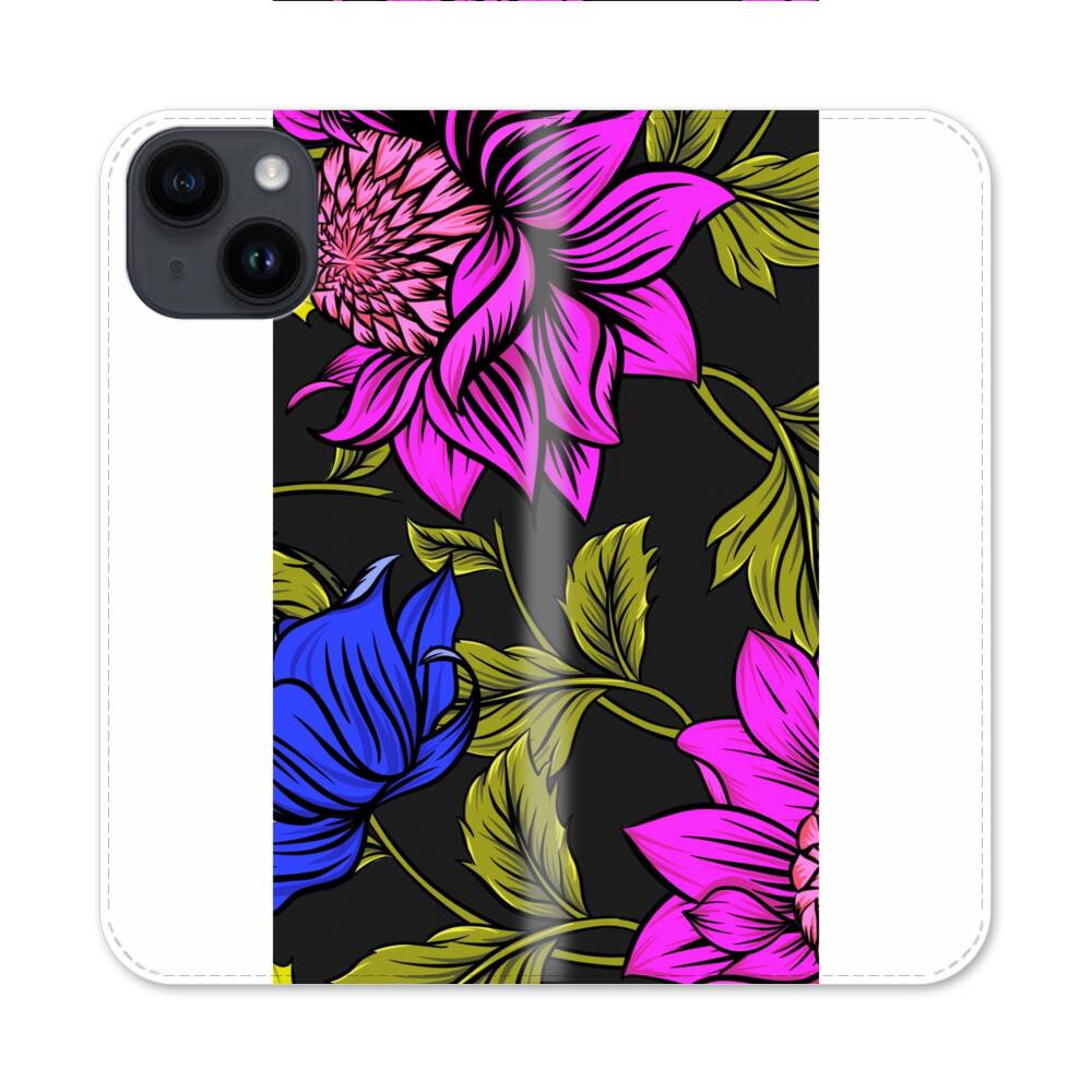 Blumen im Lila und Blau Apple iPhone 14 Flip Case● Seitlich klappbar