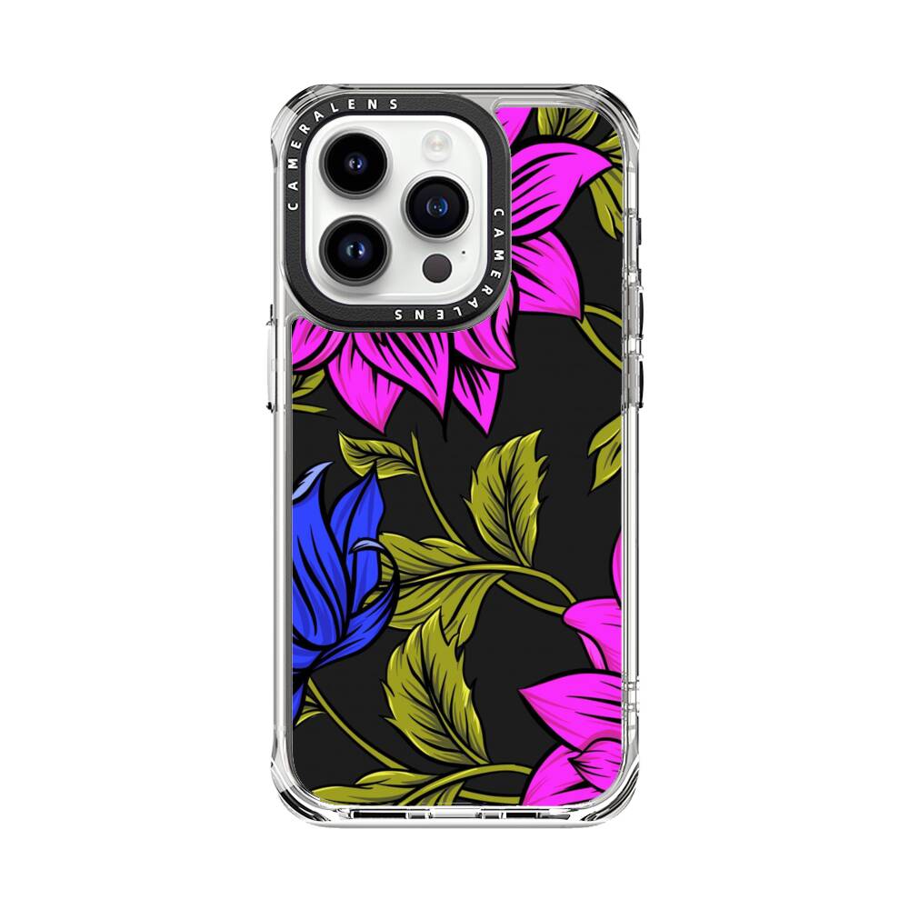 Blumen im Lila und Blau Apple iPhone 14 Pro Silikon Hülle● Sehr robust & langlebig