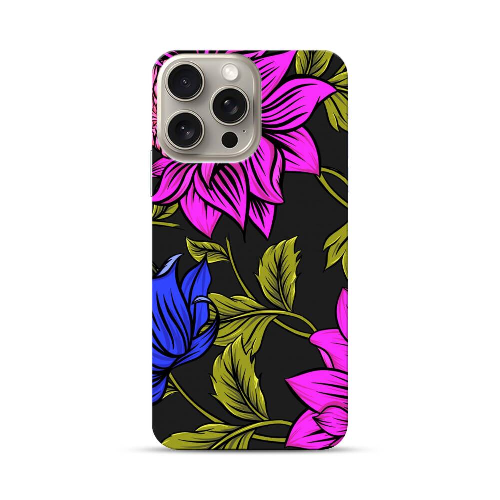 Blumen im Lila und Blau Apple iPhone 15 Pro Max Hülle● Rundum bedruckbar
