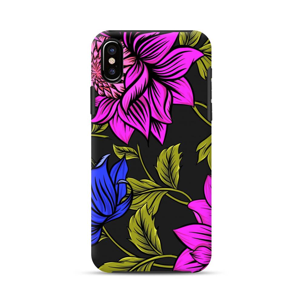 Blumen im Lila und Blau iPhone X Hybrid Hülle● Rundum bedruckbar