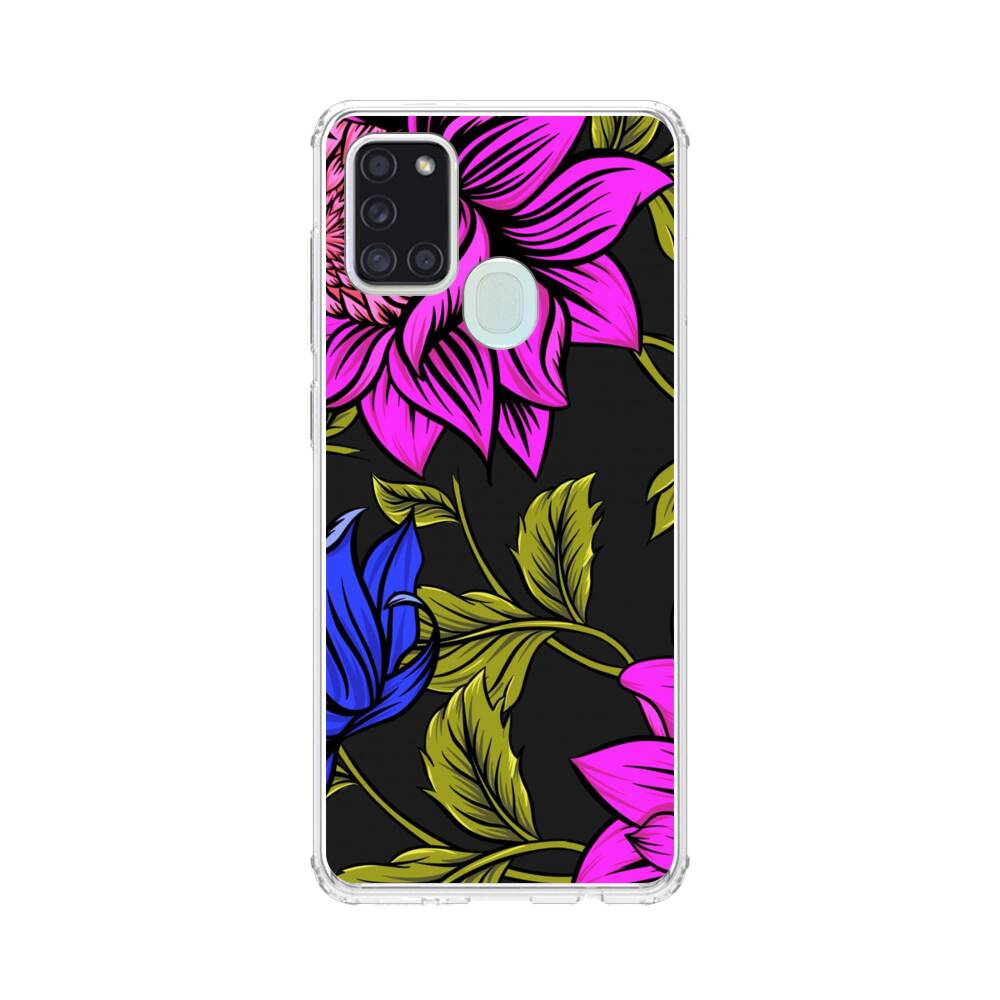 Blumen im Lila und Blau Samsung Galaxy A21s Silikon Hülle● Sehr robust & langlebig