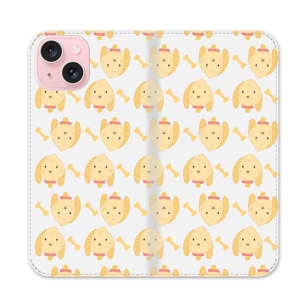 Nahtlose Muster Mit Hündchen Apple iPhone 15 Flip Case● Seitlich klappbar