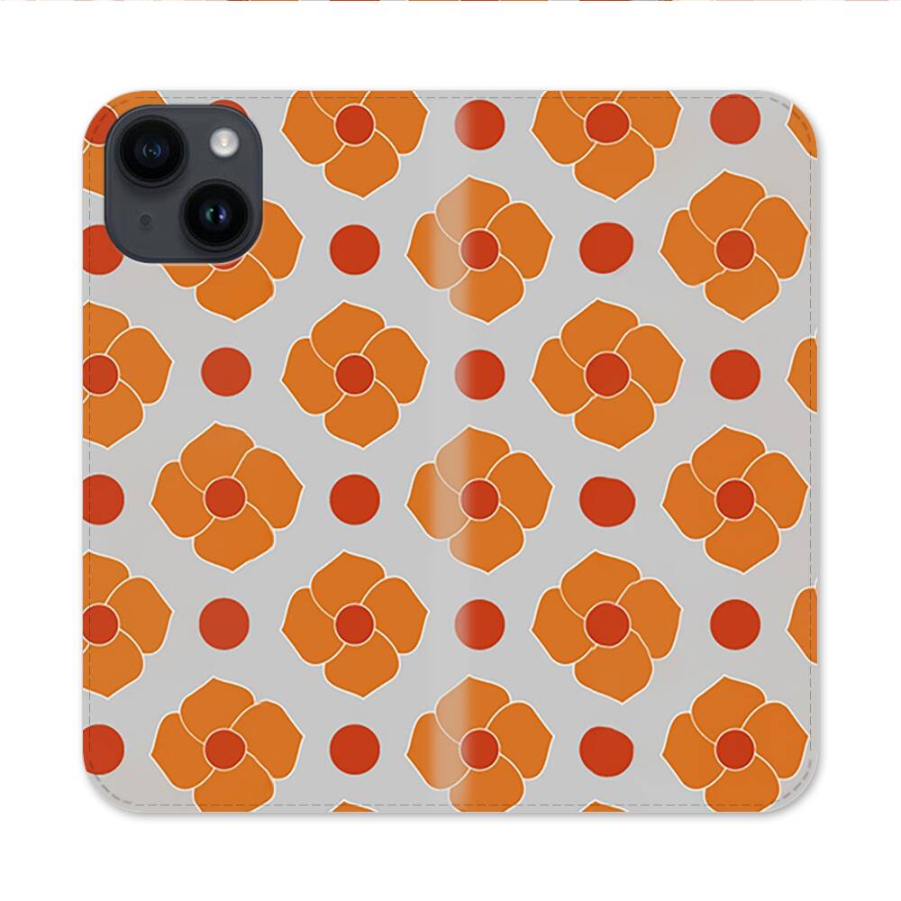 Orange Blüten Apple iPhone 14 Flip Case● Seitlich klappbar