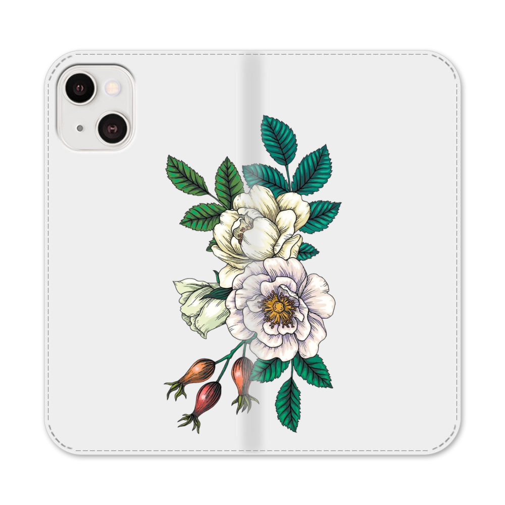 Weiße Baumpfingstrose Apple iPhone 13 Flip Case● Seitlich klappbar