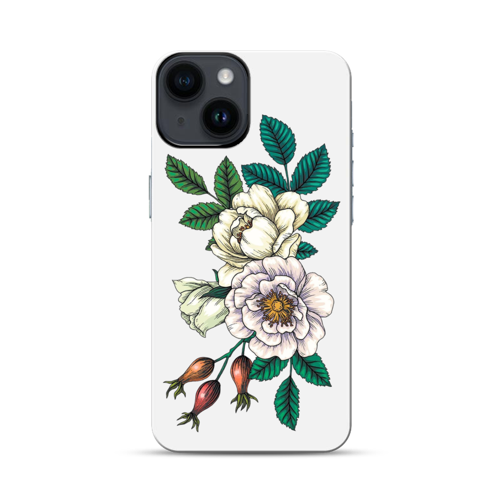 Weiße Baumpfingstrose Apple iPhone 14 Hybrid Case● Rundum bedruckbar