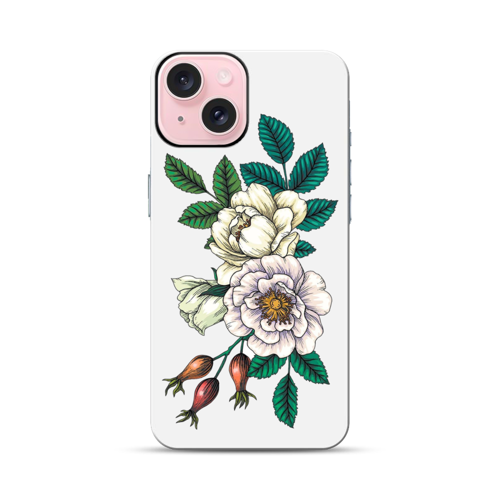 Weiße Baumpfingstrose Apple iPhone 15 Hybrid Case● Rundum bedruckbar