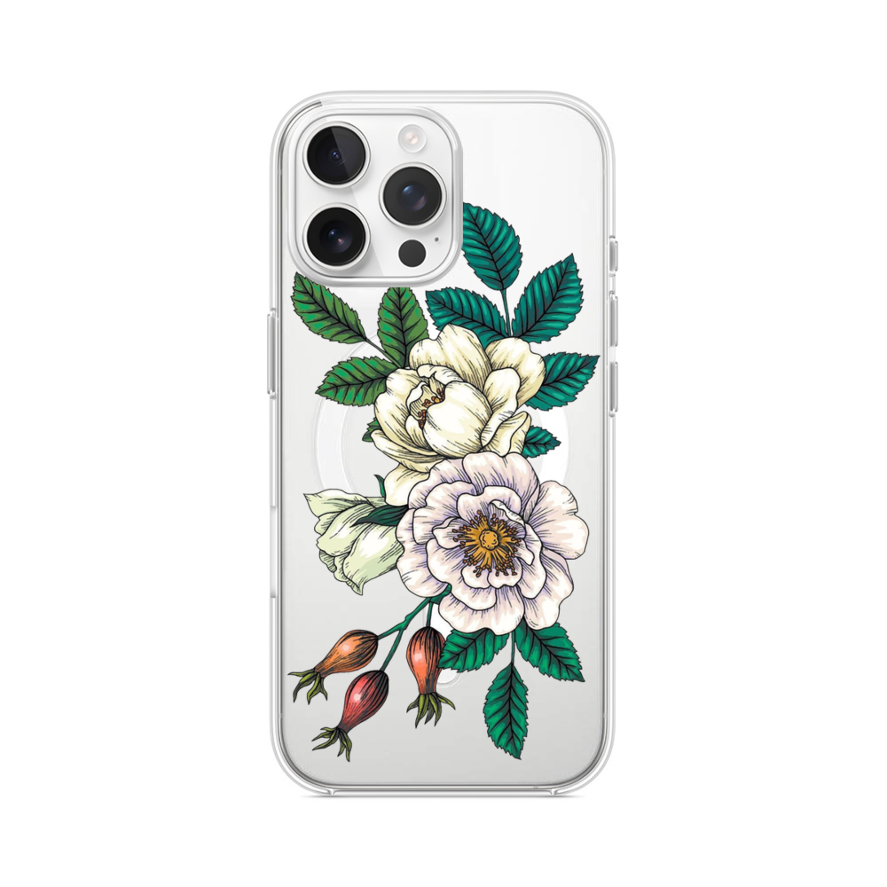 Weiße Baumpfingstrose iPhone 16 Pro Max MagSafe‑kompatible Silikonhülle mit Kamera‑Kickstand● Sehr robust & langlebig