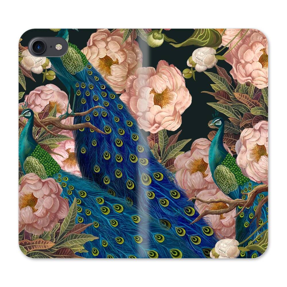 Pfingstrose um Pfauen Apple iPhone SE (2020) Flip Case● Seitlich klappbar