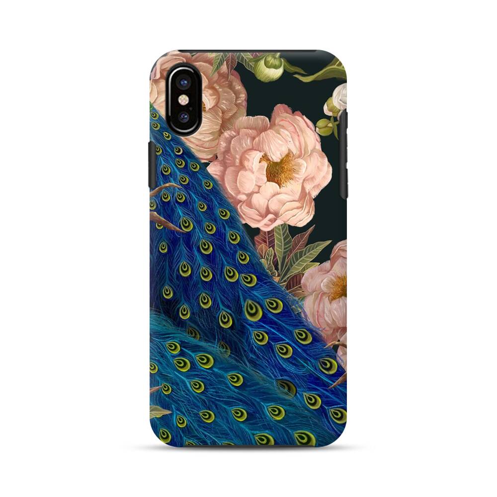 Pfingstrose um Pfauen iPhone X Hybrid Hülle● Rundum bedruckbar