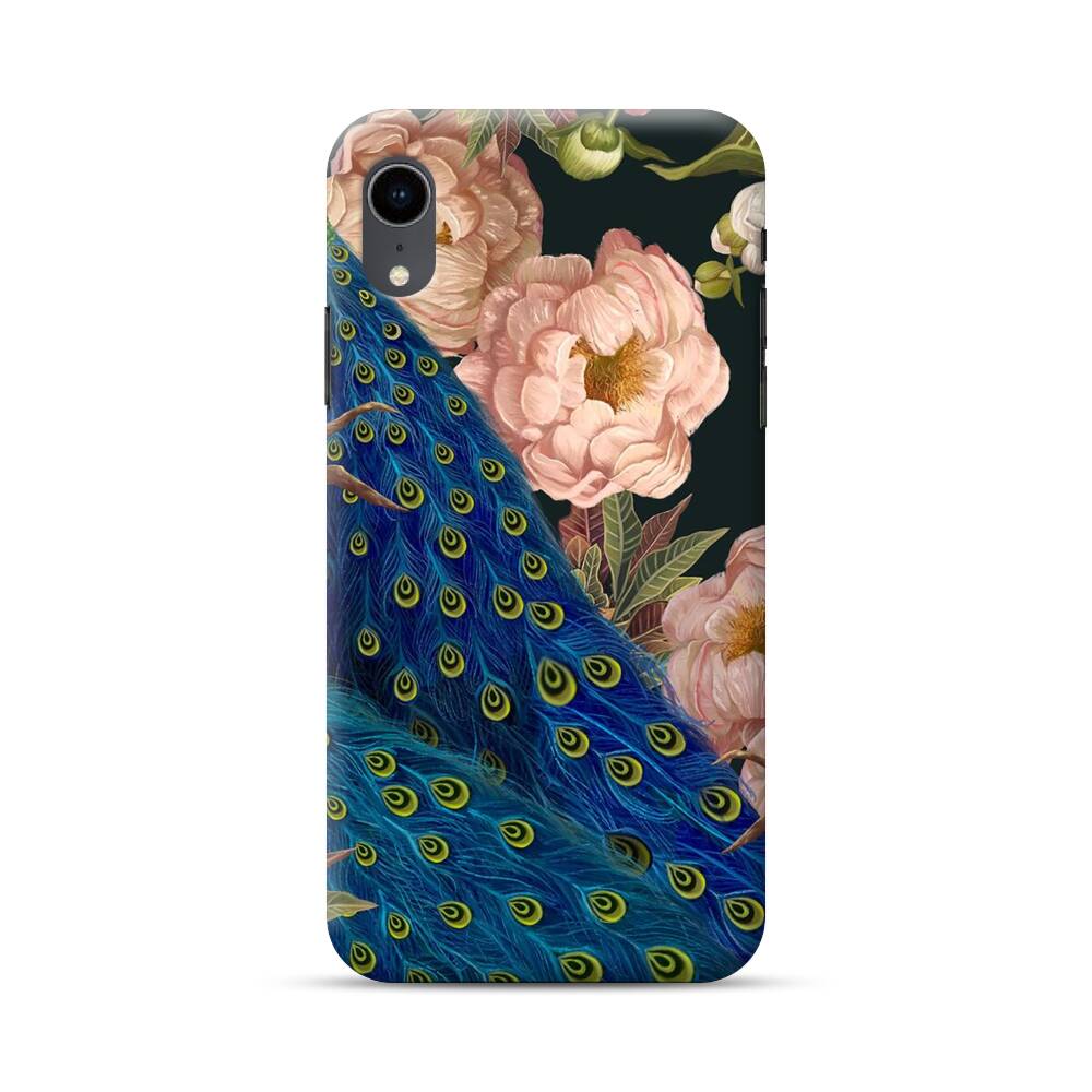 Pfingstrose um Pfauen iPhone XR Hülle● Rundum bedruckbar