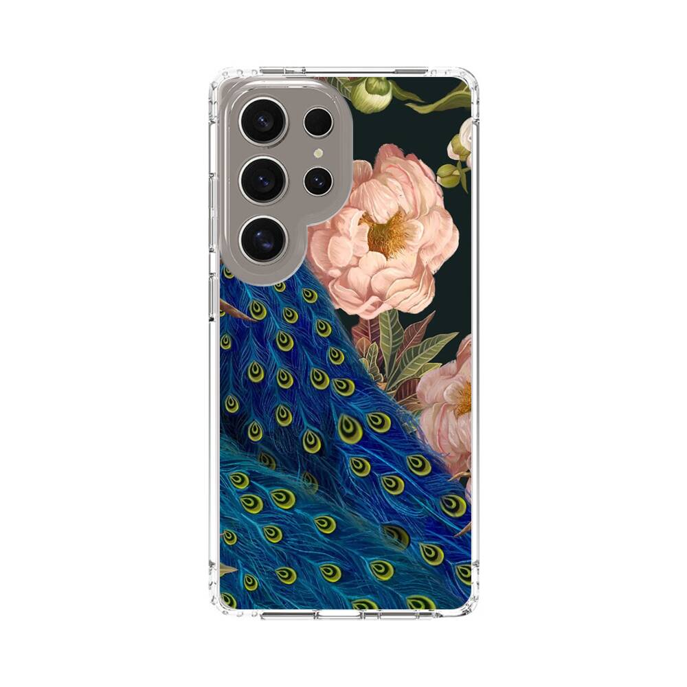 Pfingstrose um Pfauen Samsung Galaxy S25 Ultra Silikon Hülle● Sehr robust & langlebig