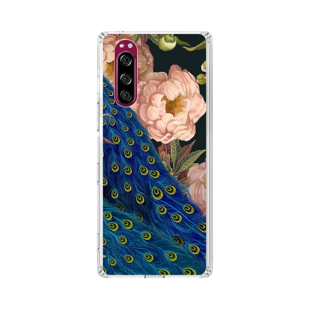 Pfingstrose um Pfauen Sony Xperia 5 Silikon Hülle● Sehr robust & langlebig