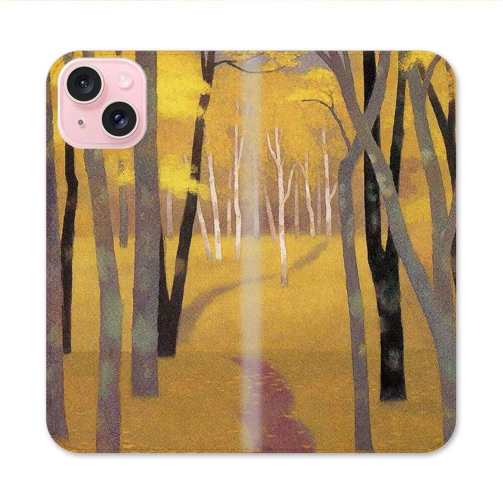 Der goldene Wald Apple iPhone 15 Flip Case● Seitlich klappbar