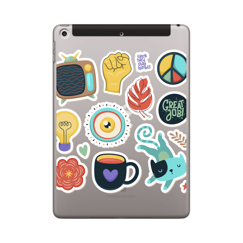 Verschiedene Cartoon Aufkleber iPad 9.7 (2018) Silikon Hülle● Sehr robust & langlebig