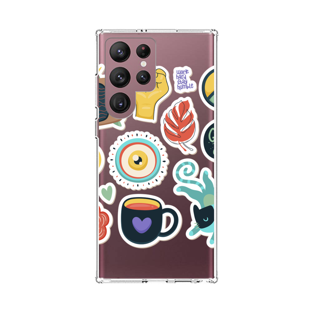 Verschiedene Cartoon Aufkleber Samsung Galaxy S22 Ultra Silikon Hülle● Sehr robust & langlebig