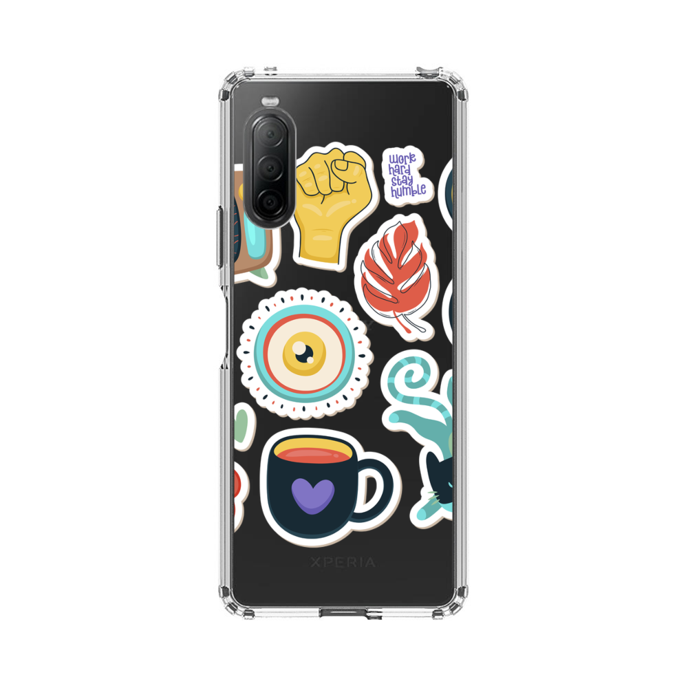 Verschiedene Cartoon Aufkleber Sony Xperia 10 II Silikon Hülle● Sehr robust & langlebig