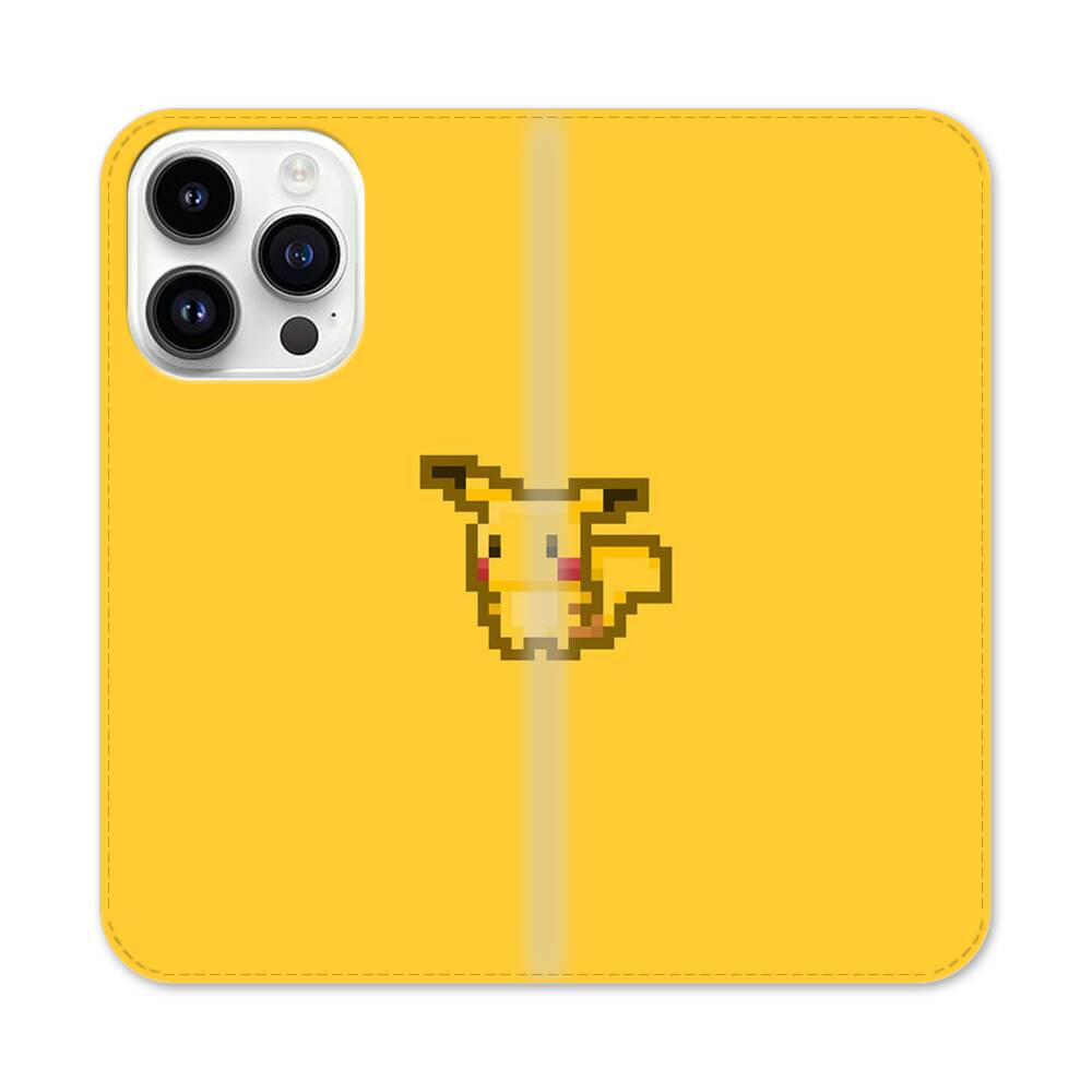 Pixel Pikachu Apple iPhone 14 Pro Flip Case● Seitlich klappbar