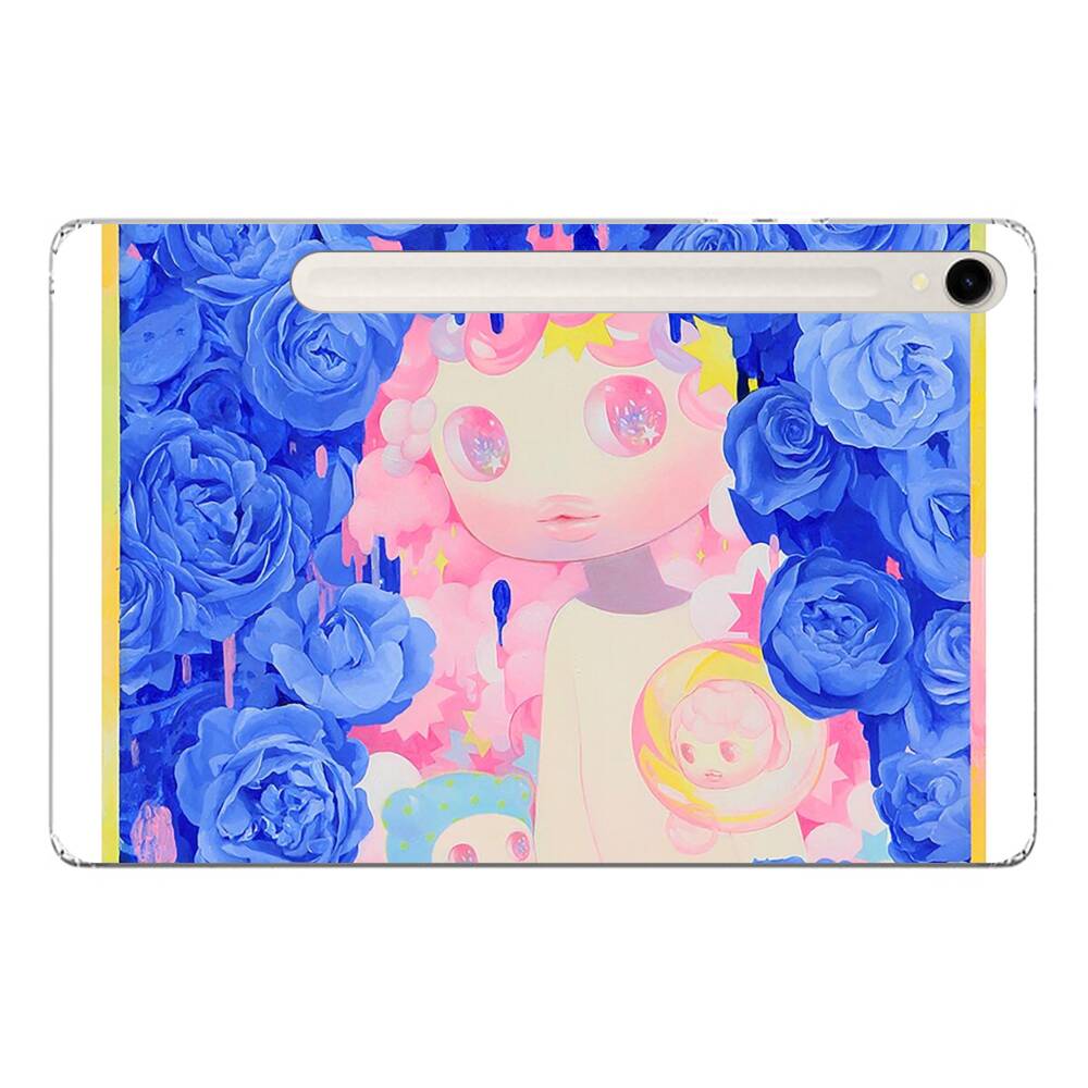 Niedliche Puppe mit blauen Rosen Samsung Galaxy Tab S9 Silikon Hülle● Sehr robust & langlebig
