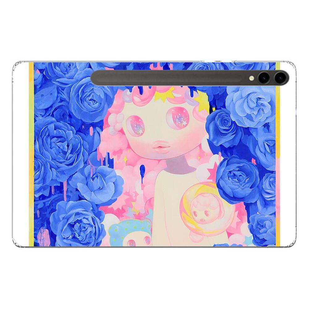 Niedliche Puppe mit blauen Rosen Samsung Galaxy Tab S9 Ultra Silikon Hülle● Sehr robust & langlebig