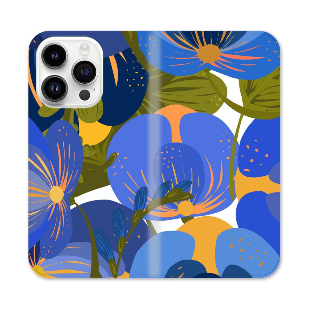 Blaue Knospen Apple iPhone 14 Pro Flip Case● Seitlich klappbar