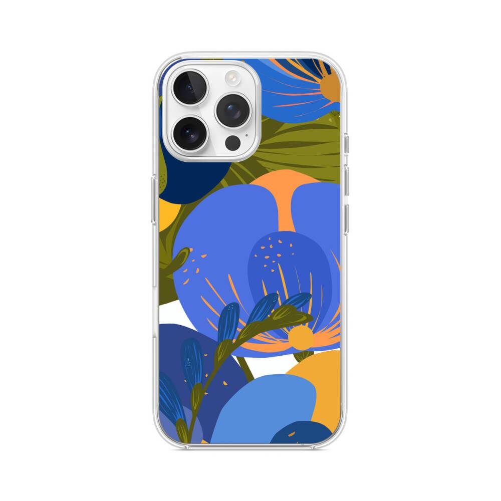 Blaue Knospen iPhone 16 Pro Max MagSafe‑kompatible Silikonhülle mit Kamera‑Kickstand● Sehr robust & langlebig