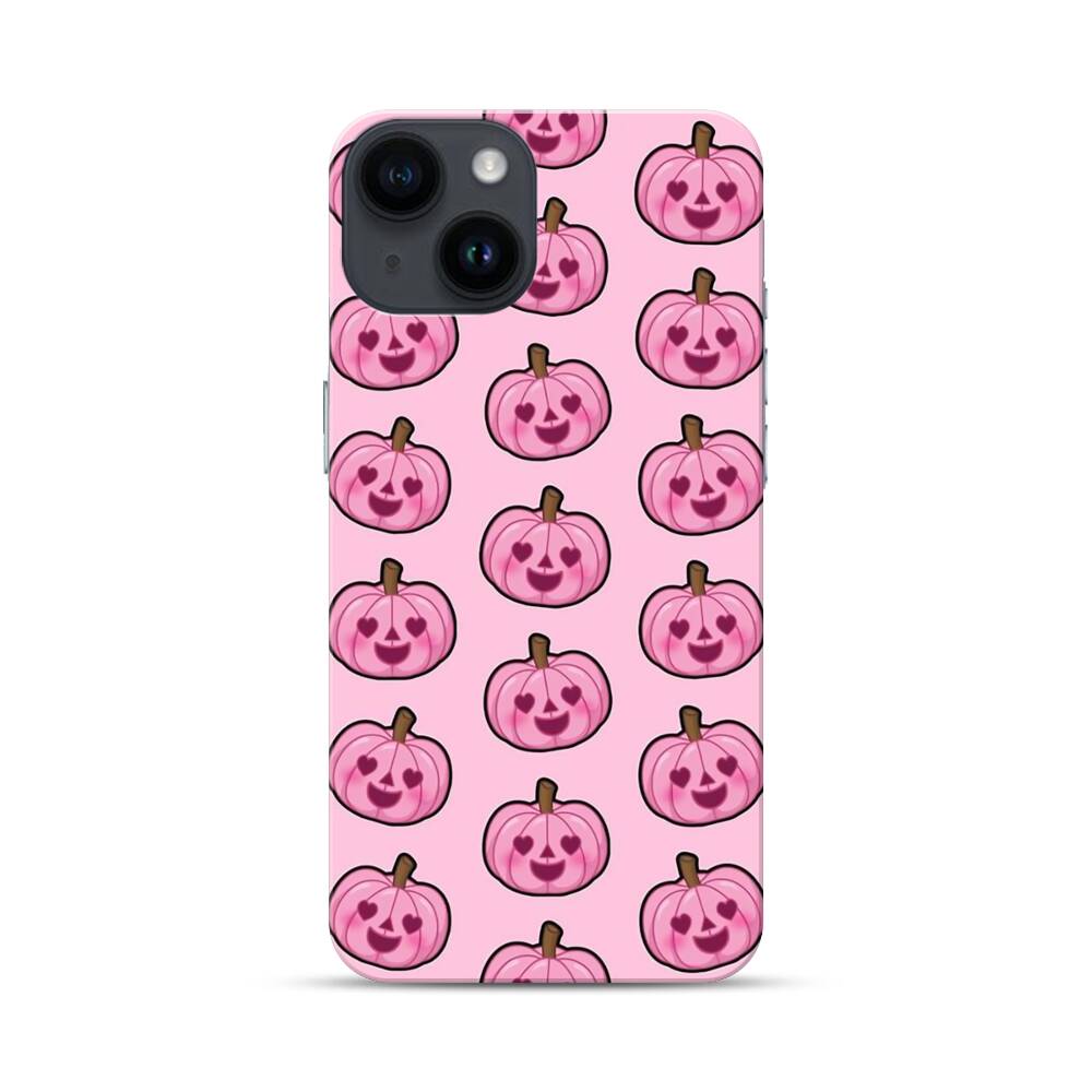 Rosa Kürbismuster Apple iPhone 14 Hülle● Rundum bedruckbar