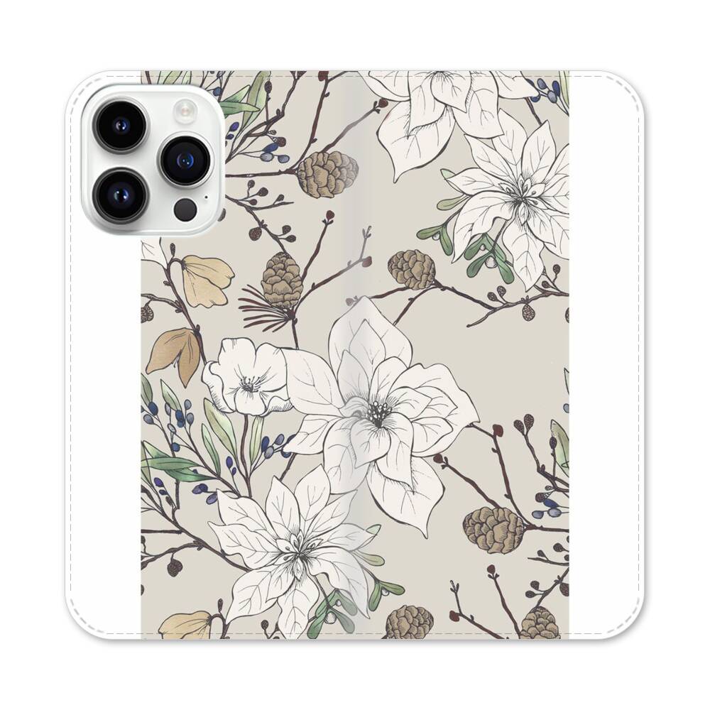 Weiße Poinsettie Apple iPhone 14 Pro Max Flip Case● Seitlich klappbar