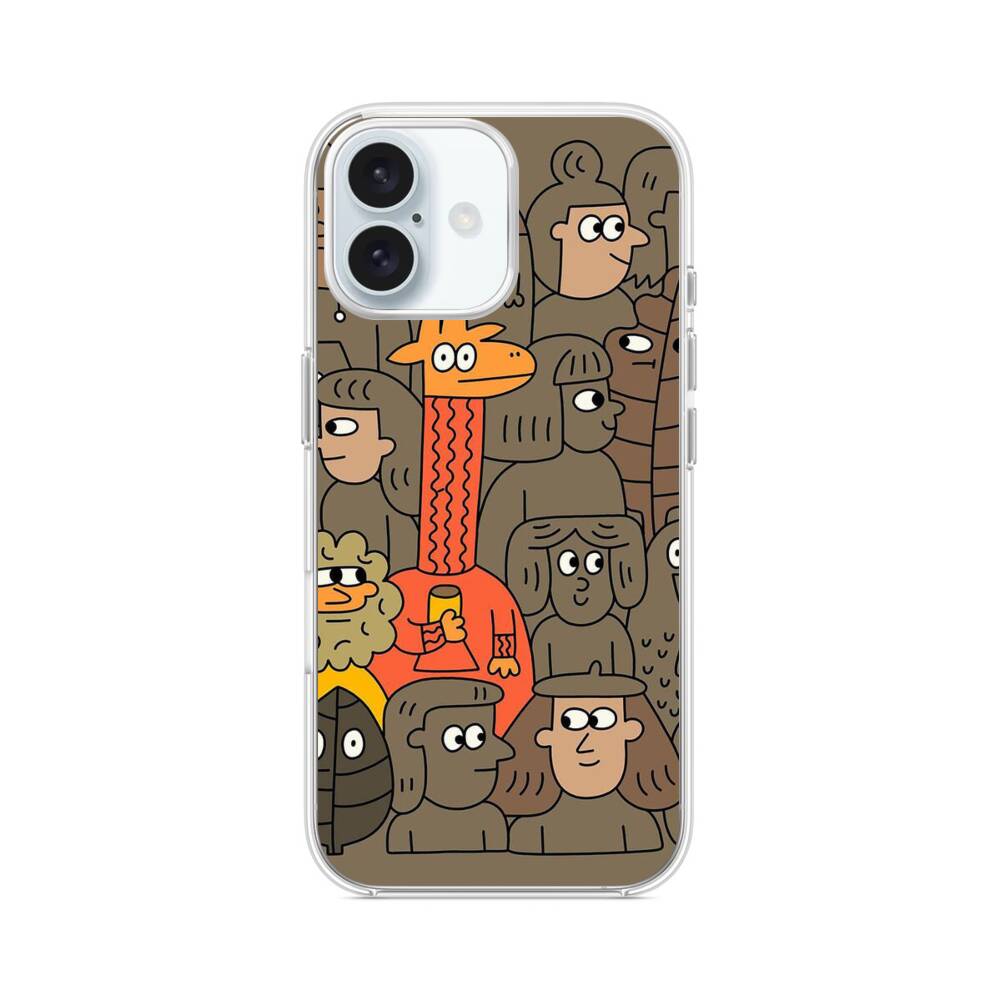 Rote Giraffe in der Menschenmenge iPhone 16 Plus MagSafe‑kompatible Silikonhülle mit Kamera‑Kickstand● Sehr robust & langlebig