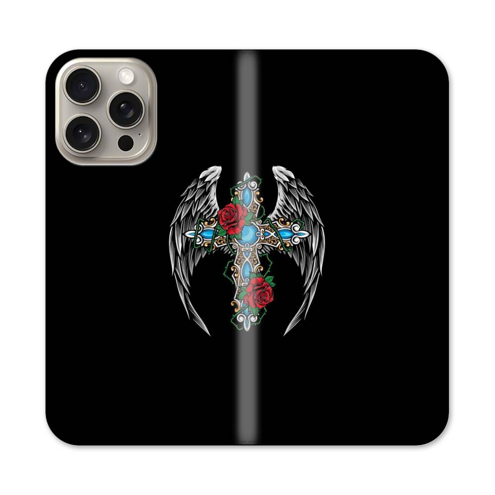 Engelskreuzung Apple iPhone 15 Pro Max Flip Case● Seitlich klappbar
