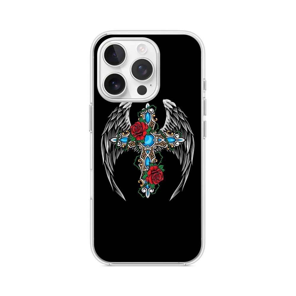 Engelskreuzung iPhone 15 Pro MagSafe‑kompatible Silikonhülle mit Kamera‑Kickstand● Sehr robust & langlebig