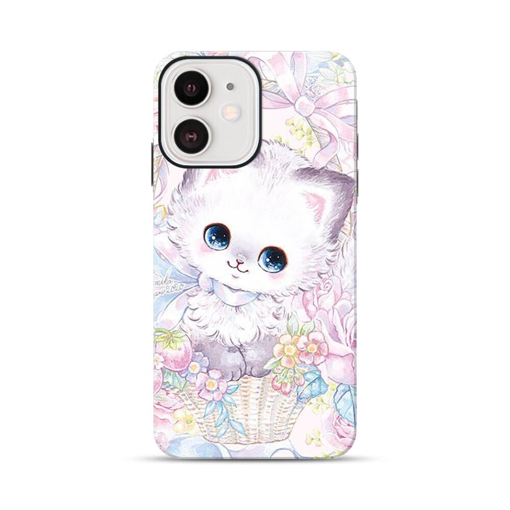 Kitty mit Blumenstrauß Apple iPhone 12 Mini Hybrid Case● Rundum bedruckbar