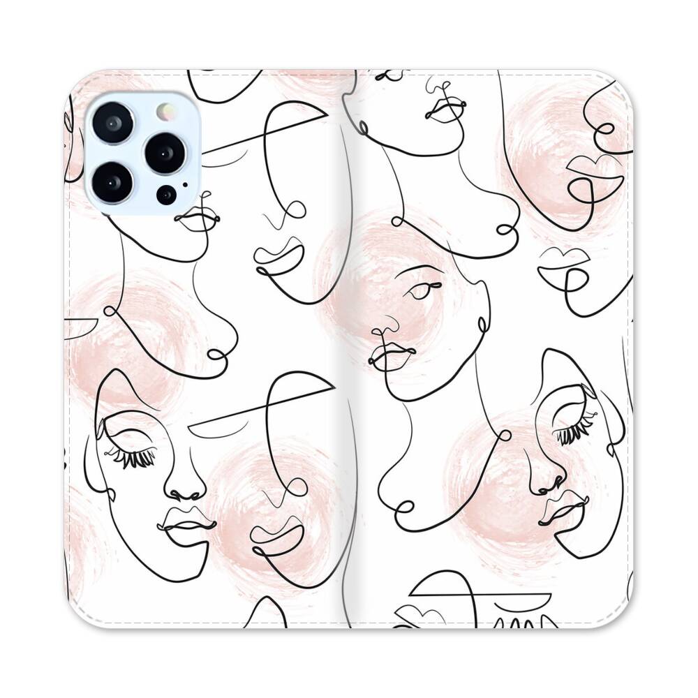 Nahtlose Abstrakte Linie Gesichter Apple iPhone 12 Pro Flip Case● Seitlich klappbar