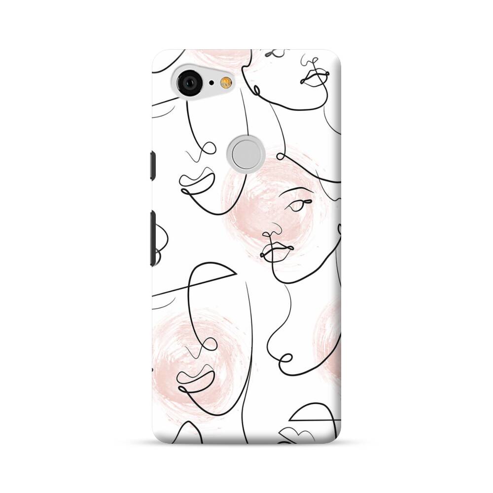 Nahtlose Abstrakte Linie Gesichter Google Pixel 3 XL Hülle● Rundum bedruckbar