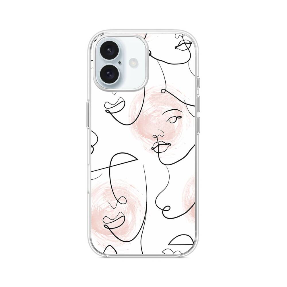 Nahtlose Abstrakte Linie Gesichter iPhone 16 Plus MagSafe‑kompatible Silikonhülle mit Kamera‑Kickstand● Sehr robust & langlebig