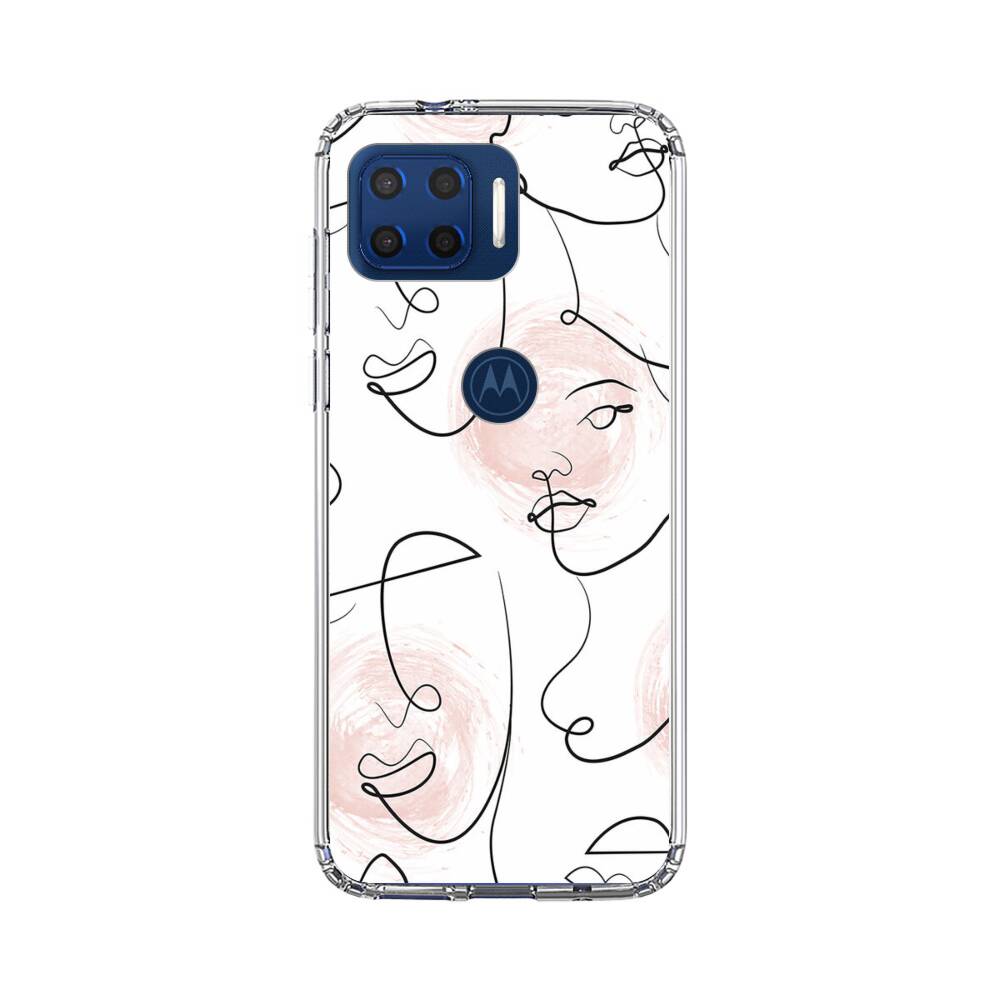 Nahtlose Abstrakte Linie Gesichter Motorola Moto G 5G Plus (2020) Silikon Hülle● Sehr robust & langlebig