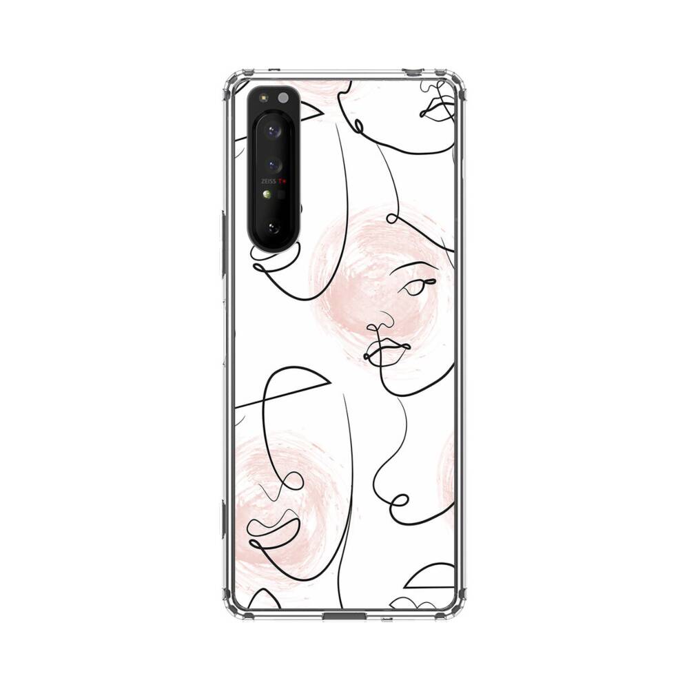 Nahtlose Abstrakte Linie Gesichter Sony Xperia 1 II Silikon Hülle● Sehr robust & langlebig