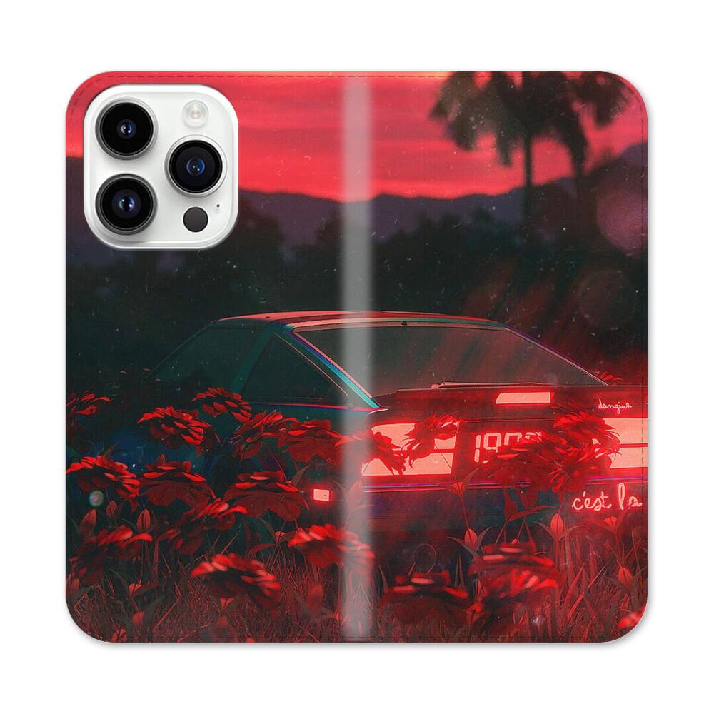 Auto im Abendrot Apple iPhone 14 Pro Flip Case● Seitlich klappbar