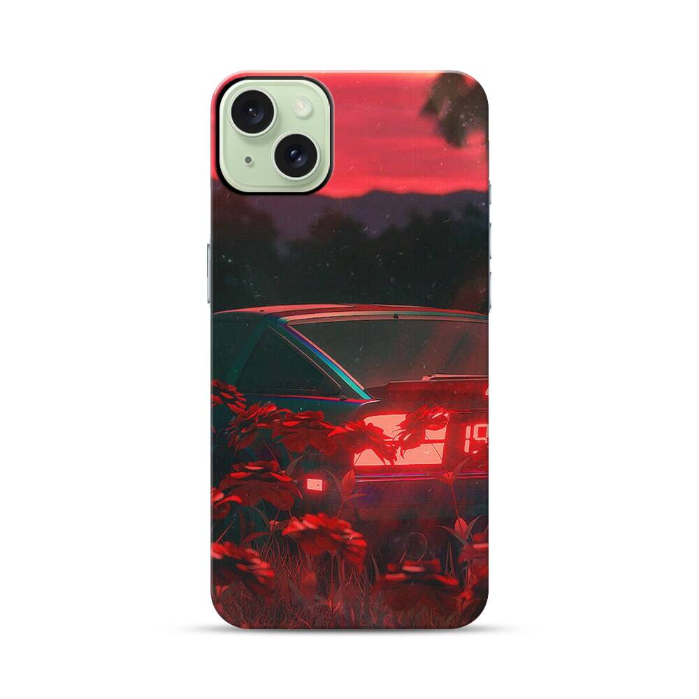 Auto im Abendrot Apple iPhone 15 Plus Hybrid Case● Rundum bedruckbar