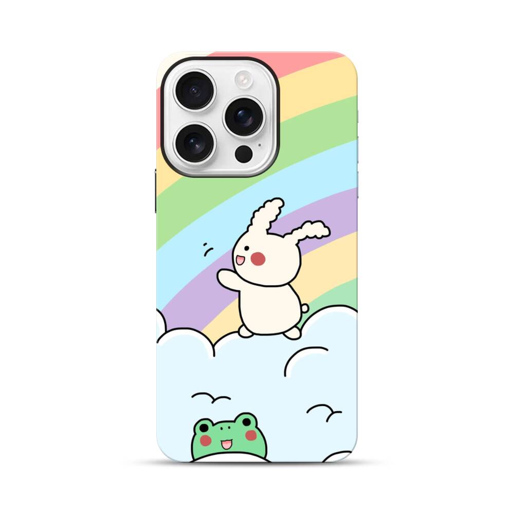 Hasen Auf Dem Regenbogen Apple iPhone 16 Pro Hybrid Case● Rundum bedruckbar
