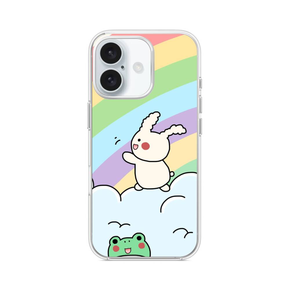 Hasen Auf Dem Regenbogen iPhone 16 MagSafe‑kompatible Silikonhülle mit Kamera‑Kickstand● Sehr robust & langlebig