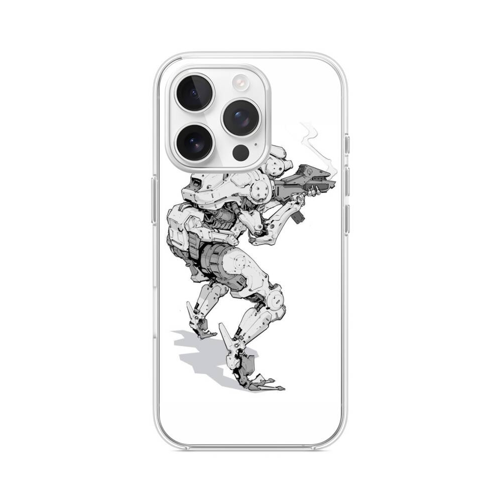 Kampfroboter iPhone 15 Pro MagSafe‑kompatible Silikonhülle mit Kamera‑Kickstand● Sehr robust & langlebig