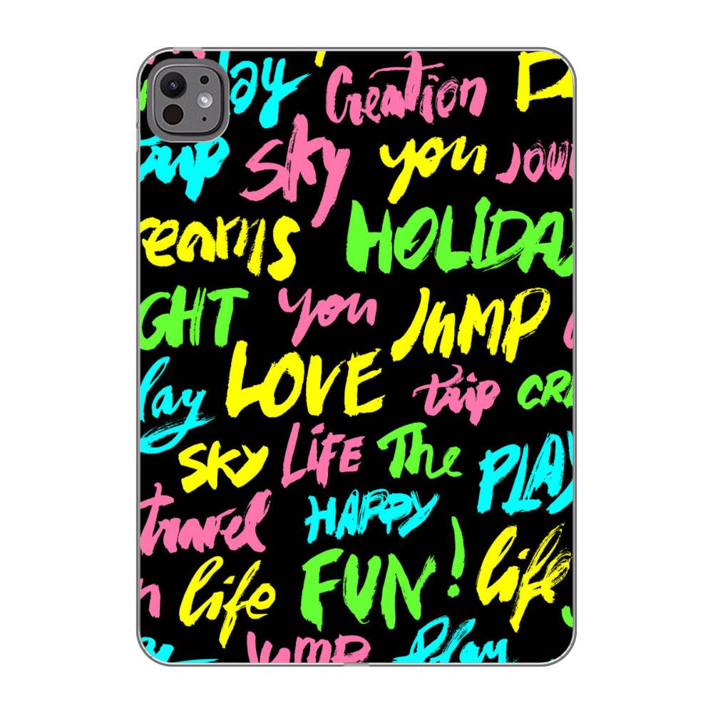 Neon Wörter Apple iPad Pro 11 (2025/2024) Silikon Hülle● Sehr robust & langlebig