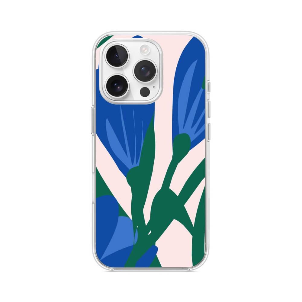 Blaue Blumen iPhone 15 Pro MagSafe‑kompatible Silikonhülle mit Kamera‑Kickstand● Sehr robust & langlebig