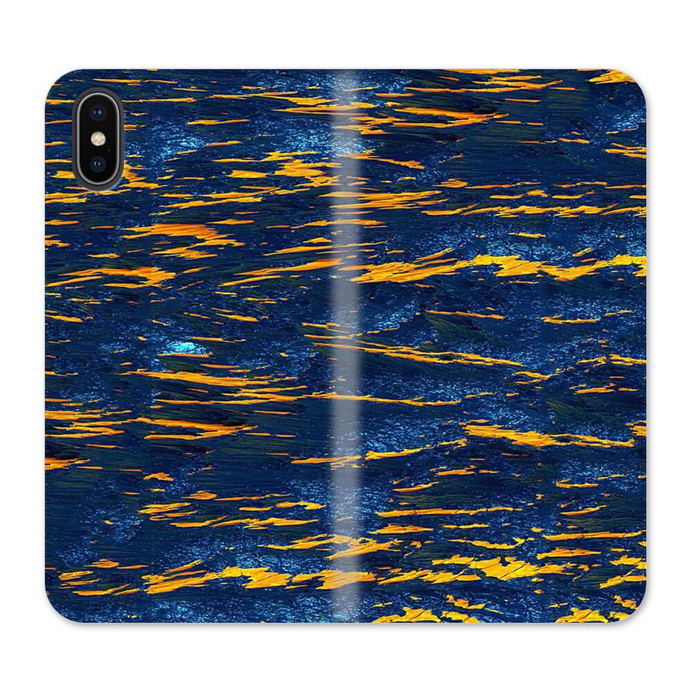 Acrylfarbe Blau iPhone XS Wallet Leder Hülle● Seitlich klappbar