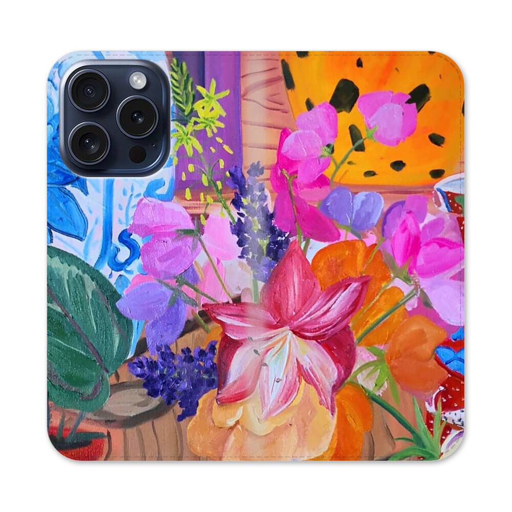 Lilie Malerei Apple iPhone 15 Pro Flip Case● Seitlich klappbar