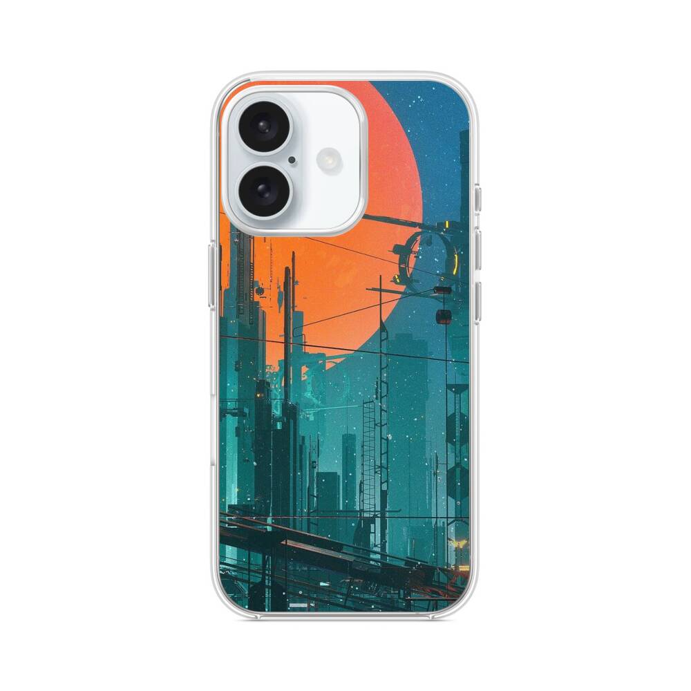 Zukünftige Stadt iPhone 16 MagSafe‑kompatible Silikonhülle mit Kamera‑Kickstand● Sehr robust & langlebig