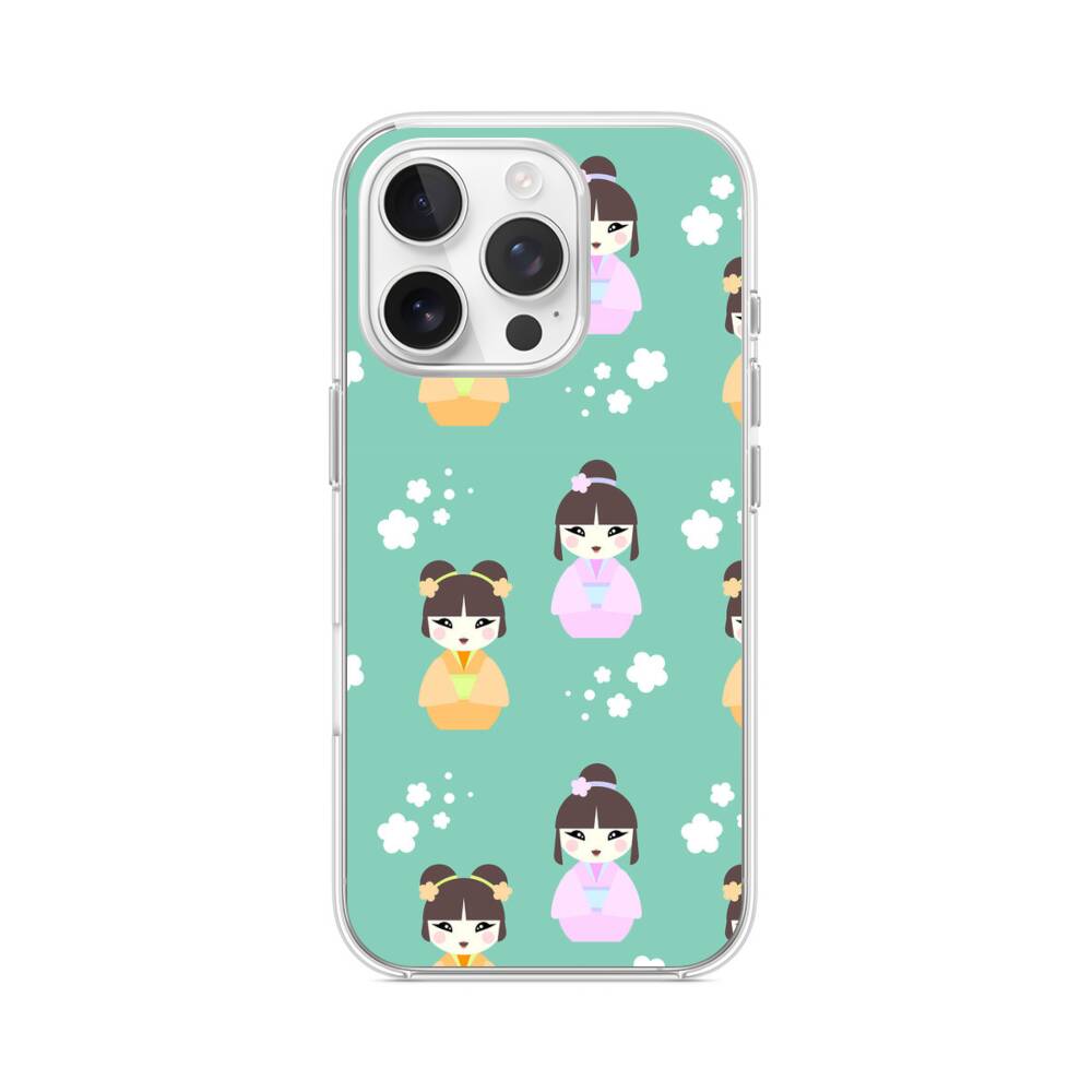 Cartoon Chinesische Puppen iPhone 15 Pro MagSafe‑kompatible Silikonhülle mit Kamera‑Kickstand● Sehr robust & langlebig