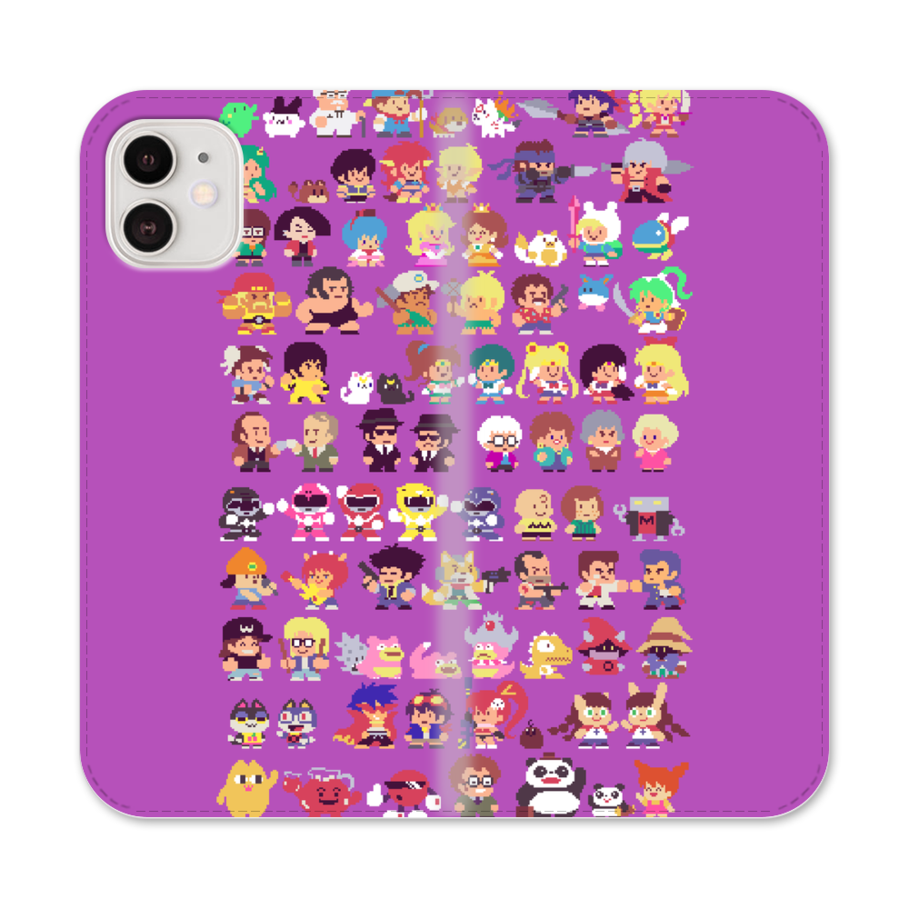 Verpixelte Cartoon Figuren Apple iPhone 12 Flip Case● Seitlich klappbar