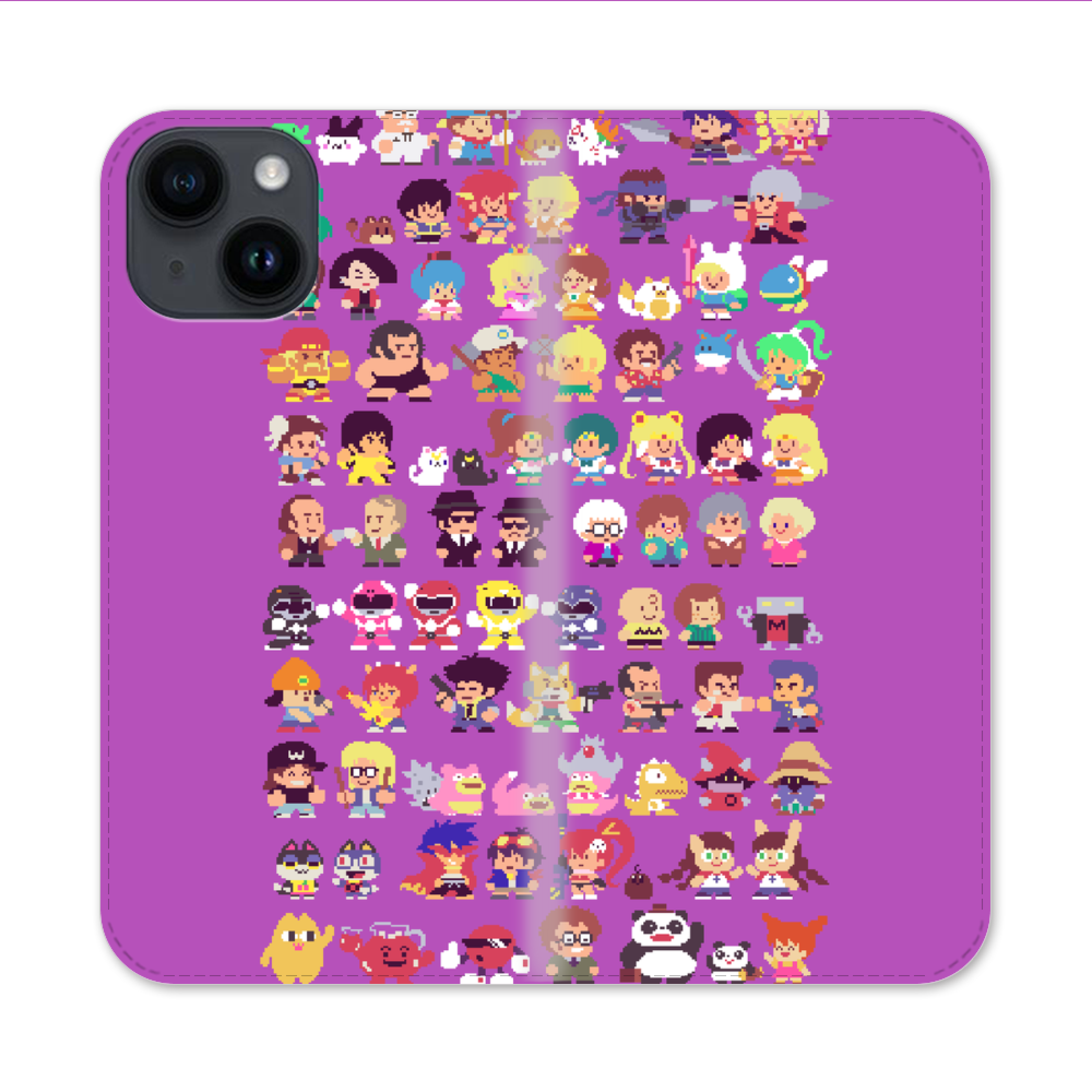 Verpixelte Cartoon Figuren Apple iPhone 14 Flip Case● Seitlich klappbar