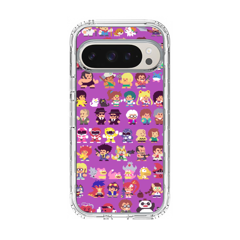 Verpixelte Cartoon Figuren Google Pixel 9 Pro Silikon Hülle● Sehr robust & langlebig